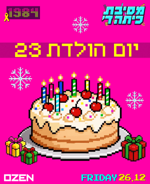 ביום שישי 26.12.25 תתקיים הפקת יום ההולדת ה-23 של הליין 1984 (כן…אנחנו באמת כמעט משנות השמונים 😂) - מסיבת כיתה ד' חגיגית, כריסמסית, נוצצת ומולטיסקסואלית בלוקיישן הקסום והאהוב שלנו - האוזן למעלה