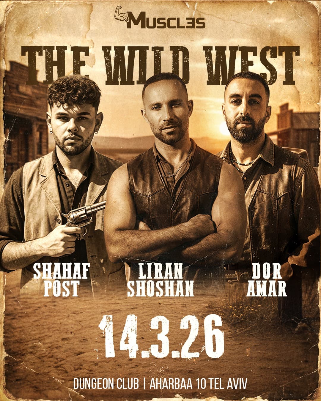 Muscles Line at the Dungeon Club presents for the first time in Israel: the Wild West production at the Dungeon Club. Three DJs on the decks, hay bales on the dance floor, beer barrels, and a true Wild West atmosphere. If we’re already talking about the end of the world.