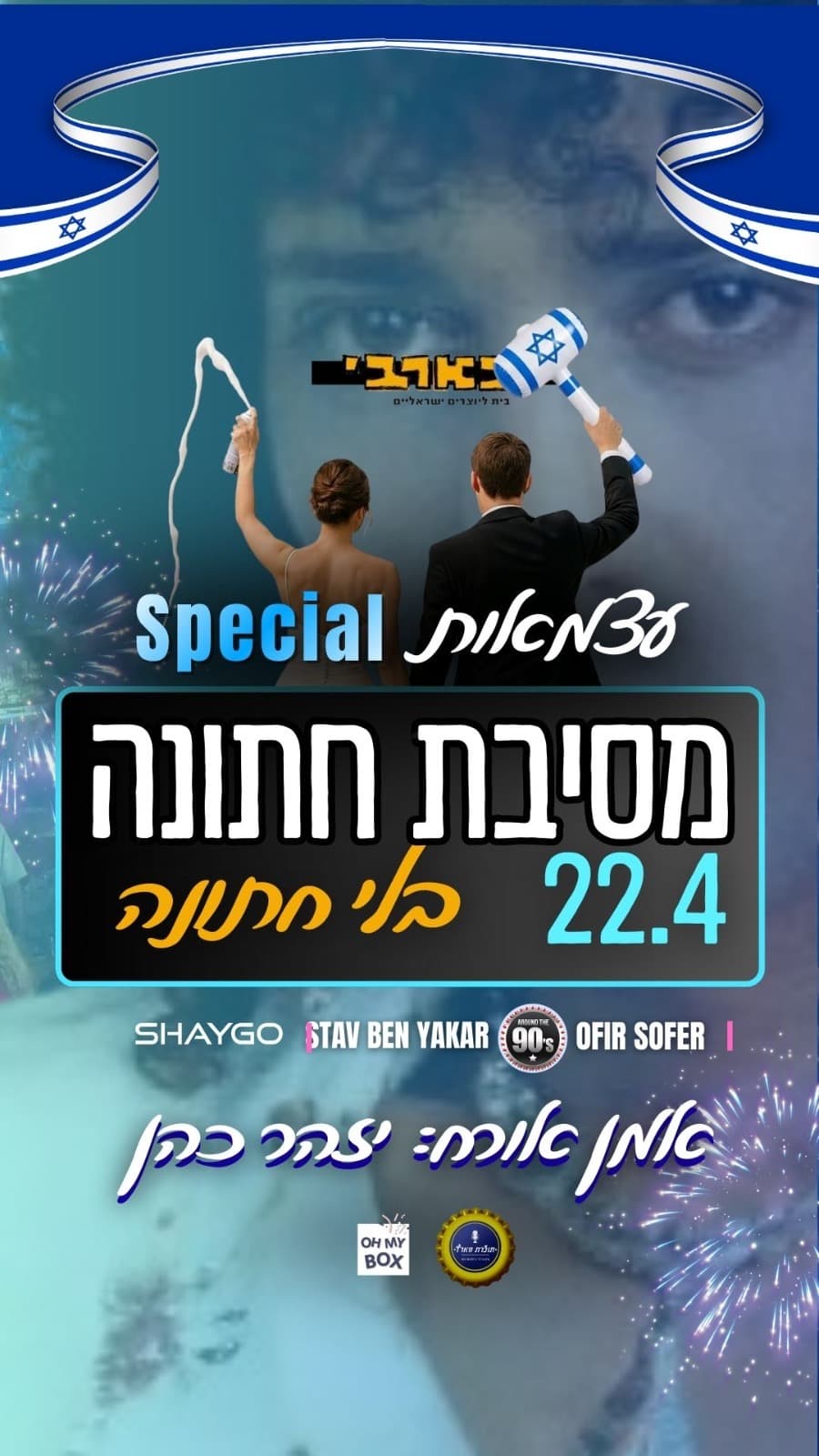 אז ביום העצמאות הזה באים לשמח, לשמוח, ולהשתתף בערב אחד של אהבה, מוזיקה וחתונה שלא תשכחו הרבה זמן!
