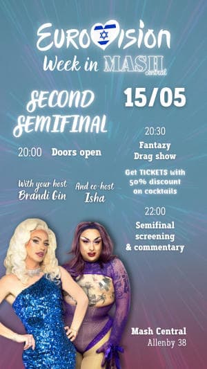 מופע דראג חגיגי + הקרנה של חצי גמר האירוויזיון בו מייצגת אותנו האחת והיחידה יובל רפאל