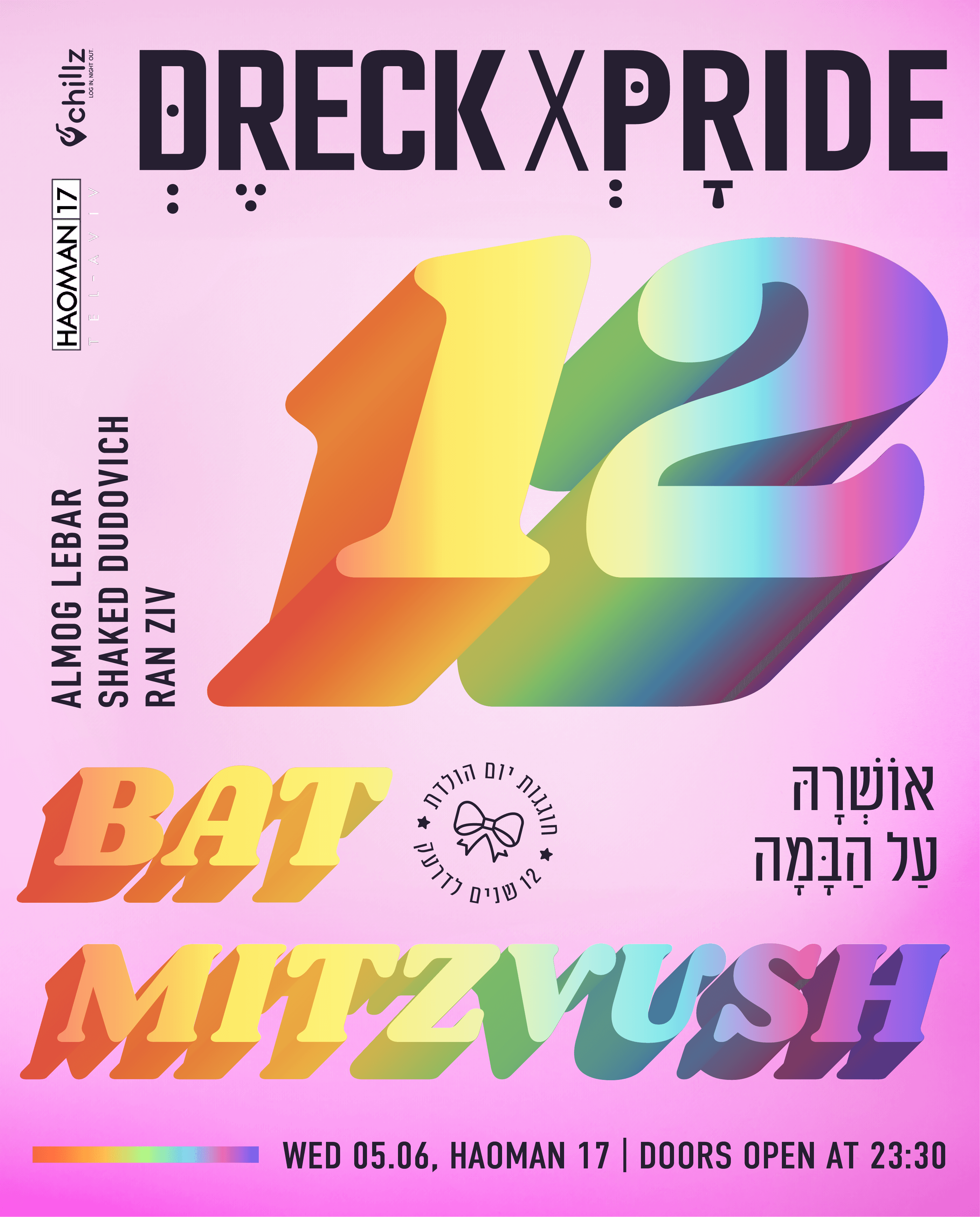 השנה נבצר מאיתנו לחגוג יום הולדת 12 לדרעק אי שם לפני כמה חודשים, והחלטנו לחכות לרגע המתאים להפוך מילדה שקטה וביישנית לאישה סקסית ומוגזמת - וביום רביעי, ה-05.06, אנחנו נפתח את סופ"ש הגאווה ונחגוג בת מצווה לדרעק באומן 17! אלמוג לבר, שקד דודוביץ' ורן זיו יעלו על העמדה - וחכו להופעה שאושרה מכינה לכןןןן ;)