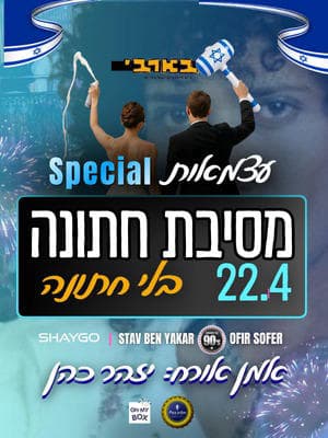 אז ביום העצמאות הזה באים לשמח, לשמוח, ולהשתתף בערב אחד של אהבה, מוזיקה וחתונה שלא תשכחו הרבה זמן!